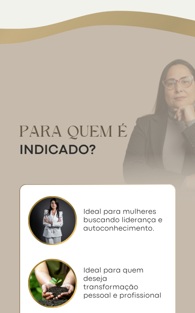 Consiste em um mergulho profundo para desenvolver a líder que existe em você, baseando-se no autoconhecimento e em ferramentas como o Método Cis e o Poder da Ação (Paulo Vieira), preparando-a para estar em movimento constante rumo a algo maior.